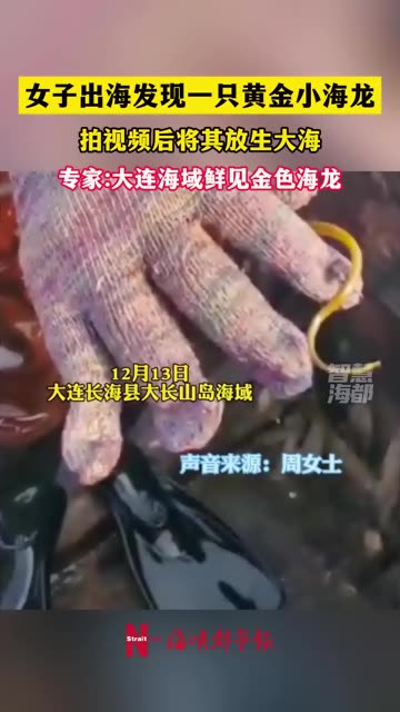 女子出海发现一只黄金小海龙,拍视频后将其放生大海,专家:大连海域鲜见金色海龙