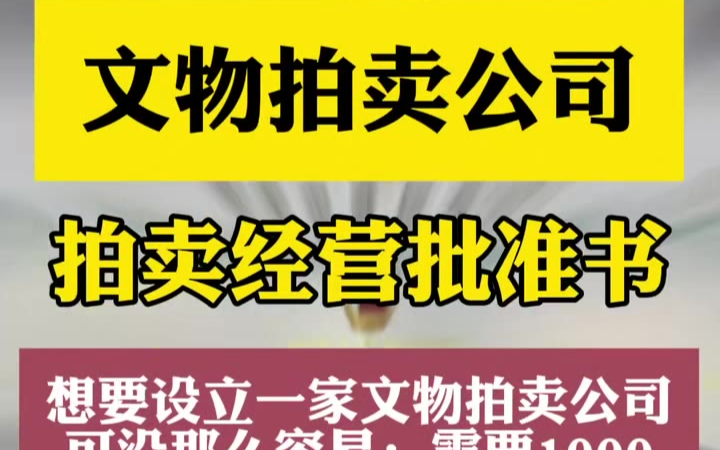 14次播放 | 00:07文物拍卖公司如何注册?拍卖公司注册必须要先核名申请名称,其次是办理拍卖许可证和文物拍卖许可证。不然