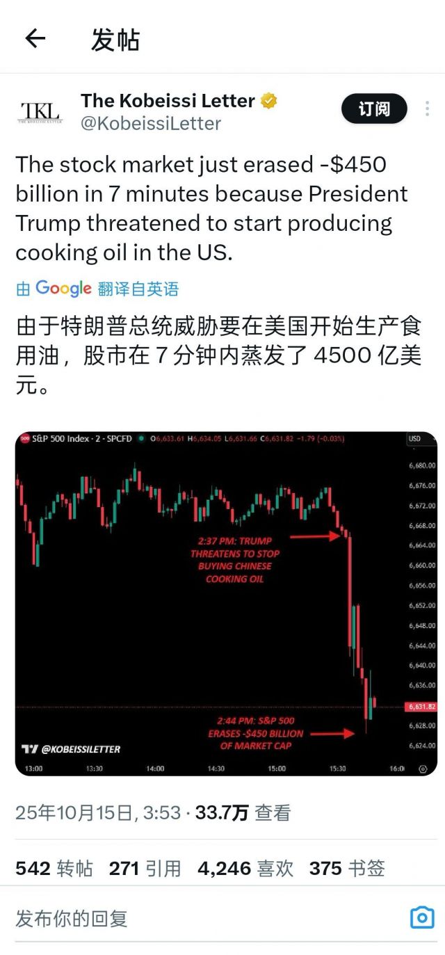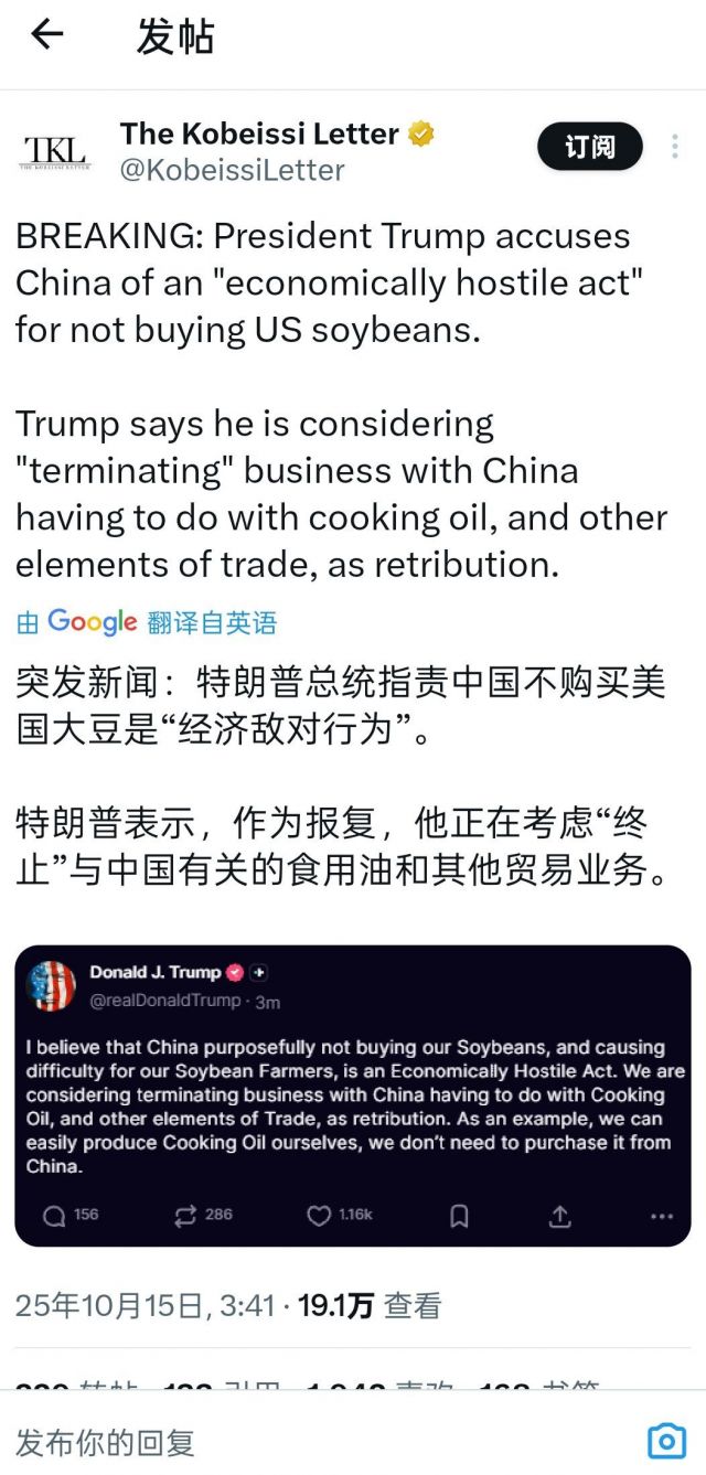 奶龙威胁中止和中国食用油贸易 股市暴跌