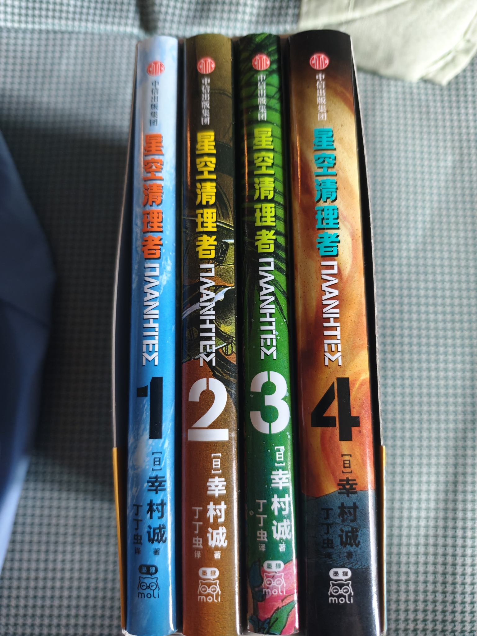 大家好啊,我是丸子由于这周去上海出差的缘故,所以周末又当闲鱼休息一周了不过视频不更,书报可以继续,刚好做了《星空清理者》的视频,就来安利一下简体的这套实体漫画首先这套书一共四本,目前价格在100左右,