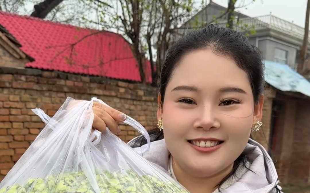 河南的春天就是蒸,这俩天就是吃榆钱的时候,妞妞冒雨给公公送榆钱,做一大锅榆钱两吃,一口窝窝一口蒜,真
