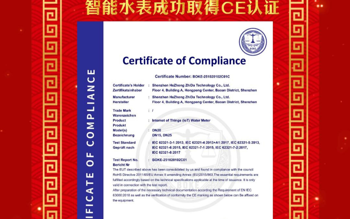 合众致达智能水表获CE认证,扬帆出海再进一步!