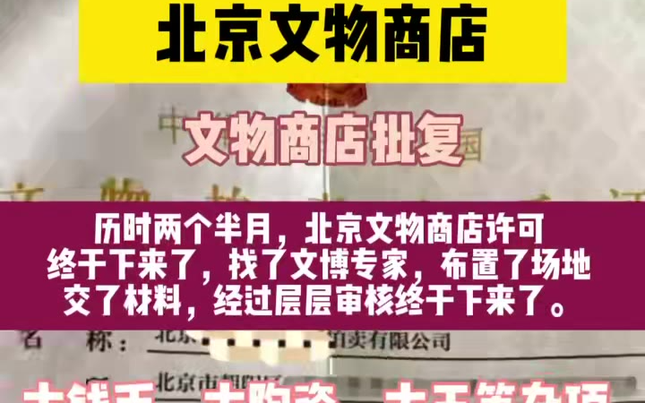 12次播放 | 00:07给大家看看最新下来的,广东文物拍卖公司、文物拍卖许可,经过层层审批,终于下来了,太不容易了