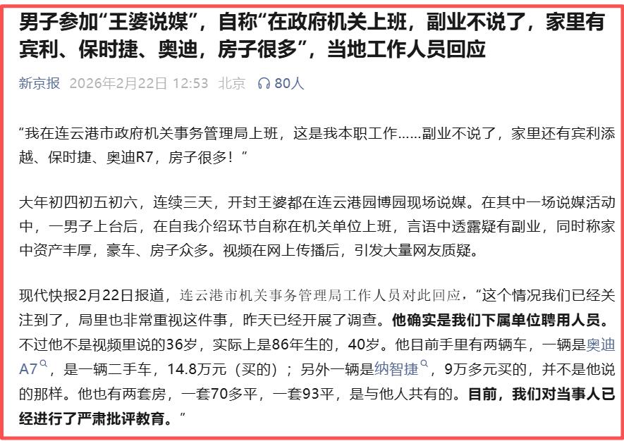 王婆说媒做客连云港,惊险隐形富豪公务员男嘉宾,官方回应