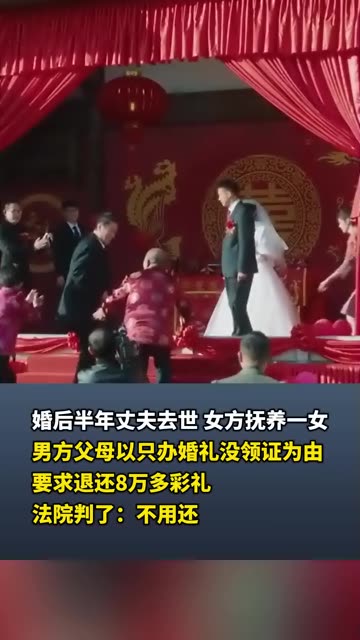 婚后半年丈夫去世 女方抚养一女 男方父母以只办婚礼没领证为由 要求退还8万多彩礼 法院判了:不...