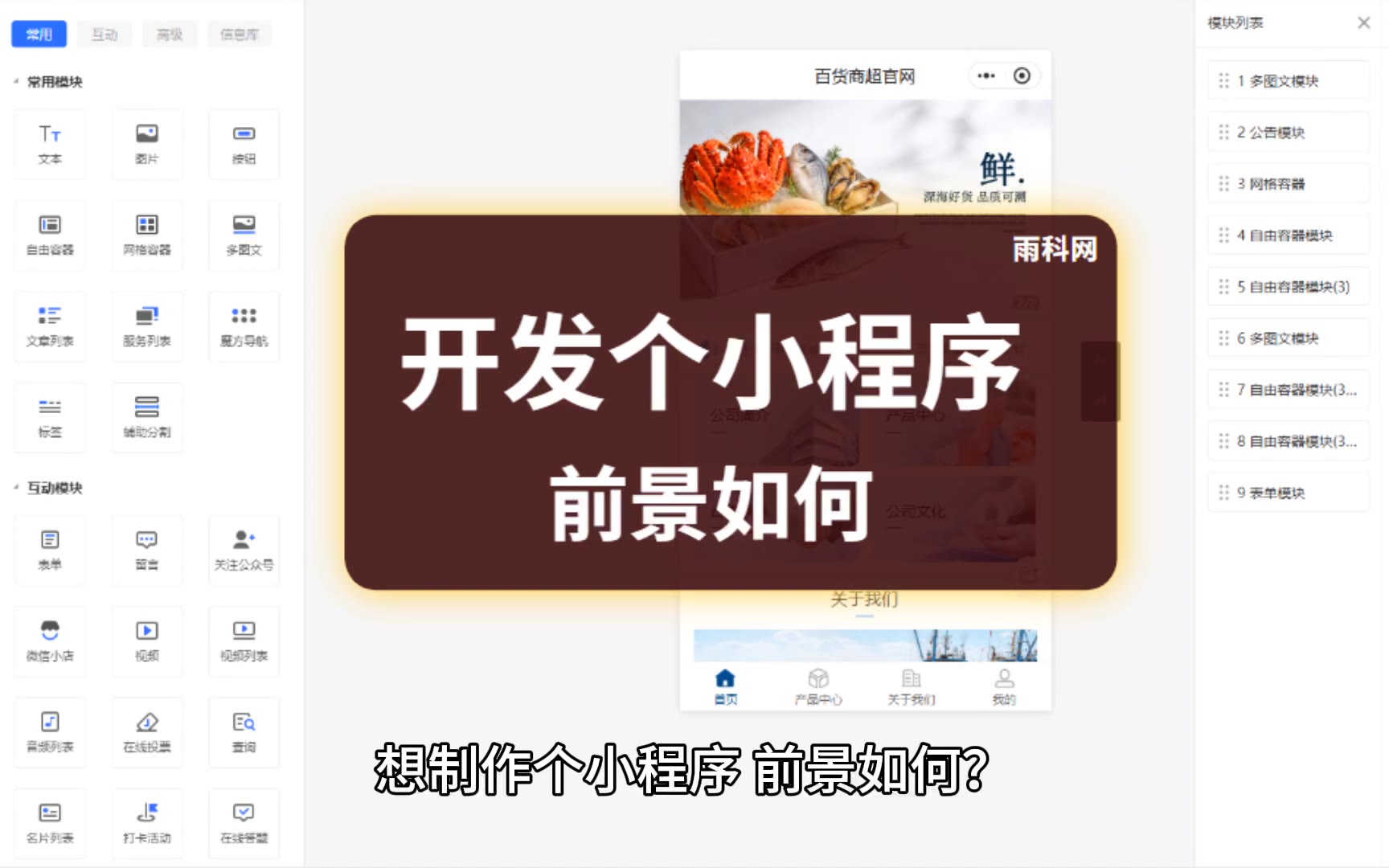 0次播放 | 00:37开发培训小程序,是定制还是自己模板做呢