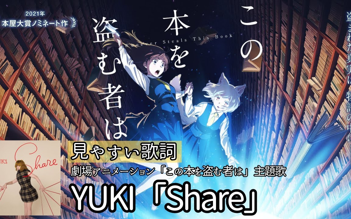 見やすい歌詞/最新曲【 YUKI「Share」】劇場アニメーション「この本を盗む者は」主題歌 #ゆき