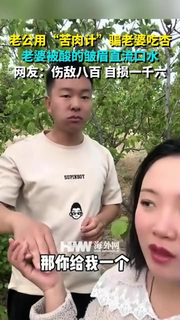 137次播放 | 00:24老公用“苦肉计”骗老婆吃杏 老婆被酸的皱眉直流口水 网友:伤敌八百 自损一千六