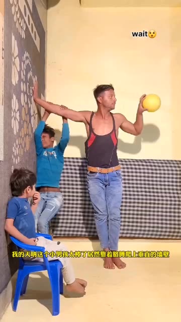 我的天呐这个小男孩居然可以徒手攀墙