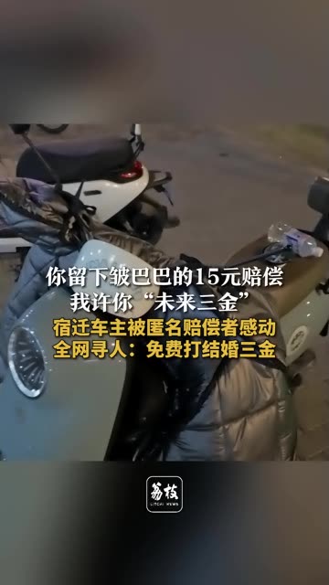 0次播放 | 07:40你留下皱巴巴的15元赔偿 我许你“未来三金” 宿迁车主被匿名赔偿者感动 全网寻人:免费打结婚三...
