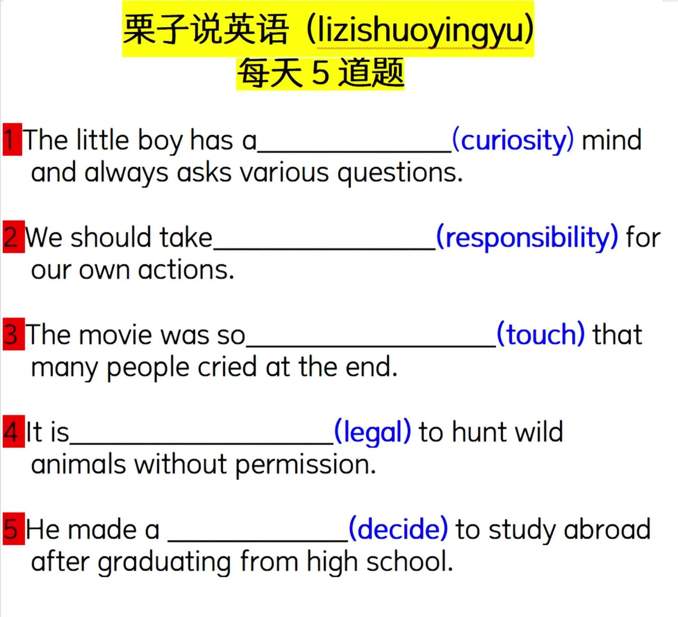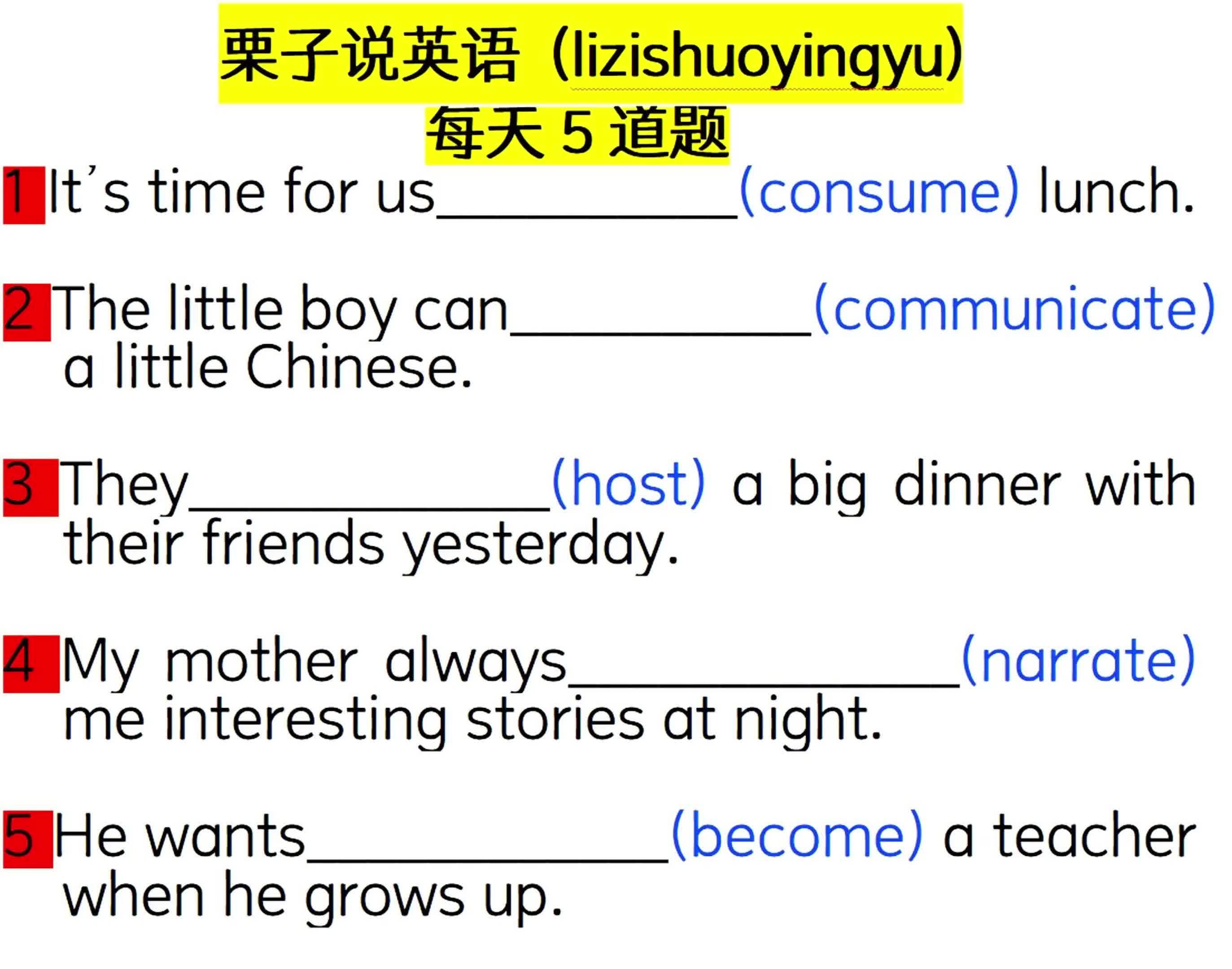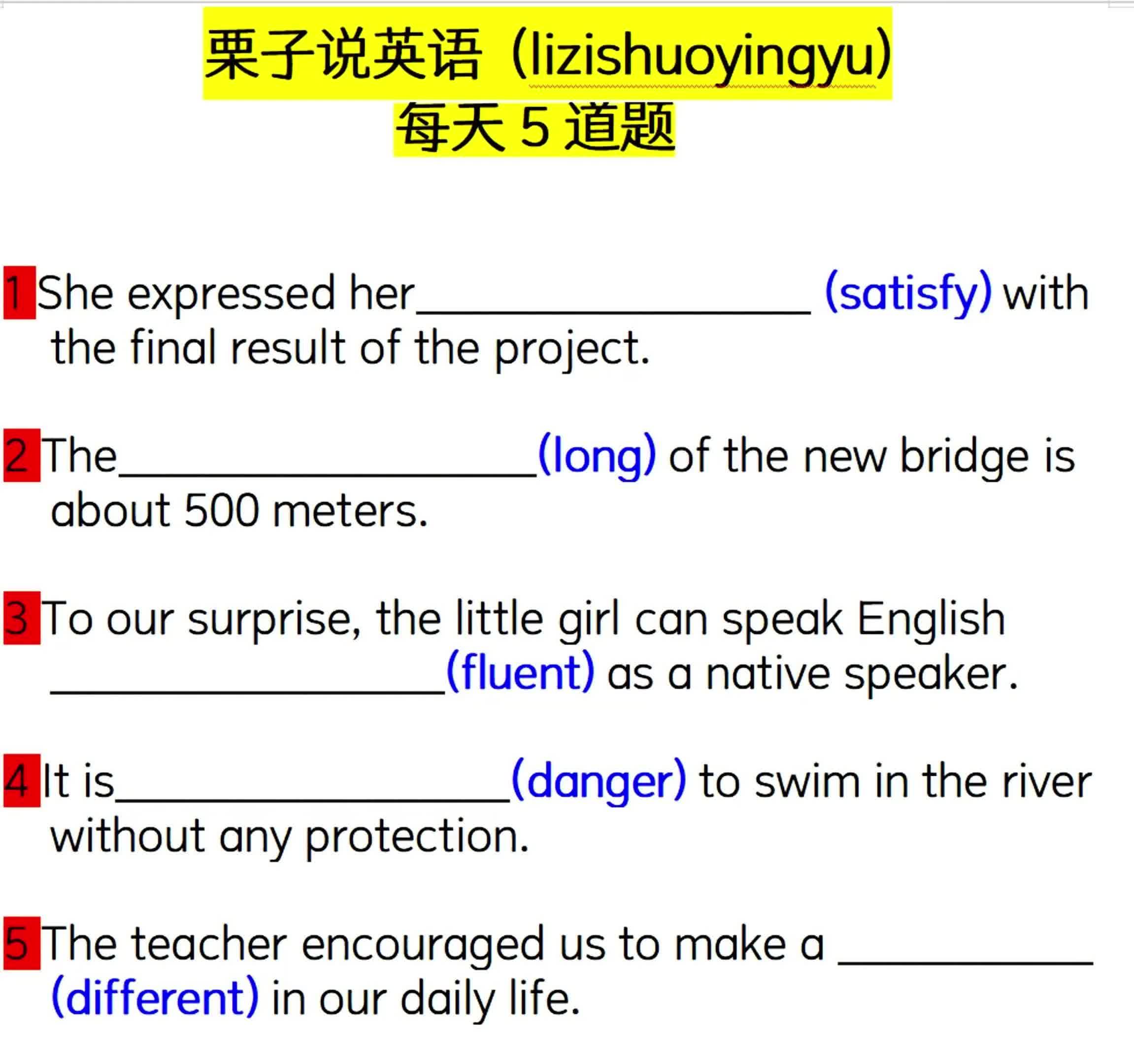4.2万次播放 | 01:38每天5道题:用所给单词的适当形式填空01011