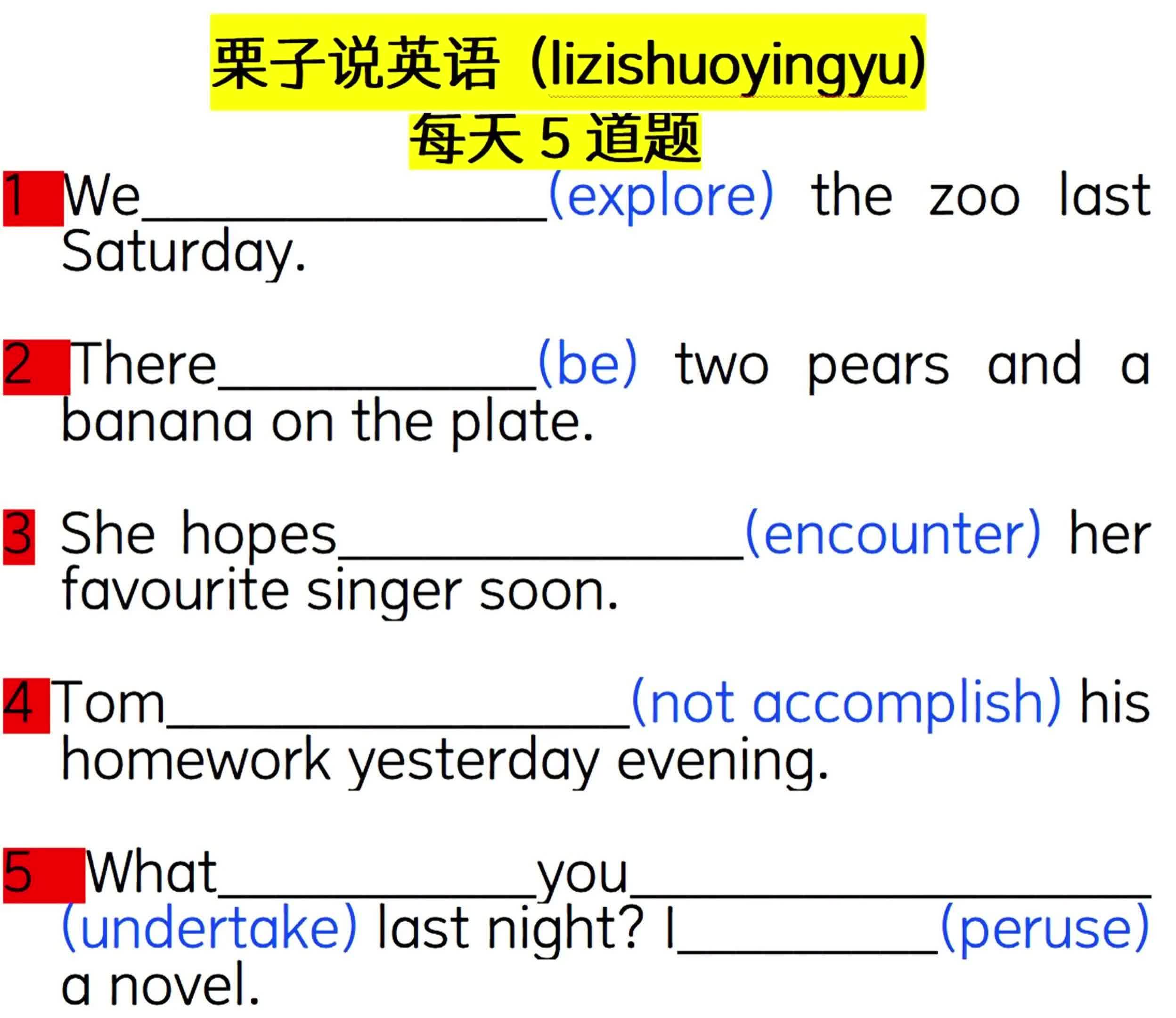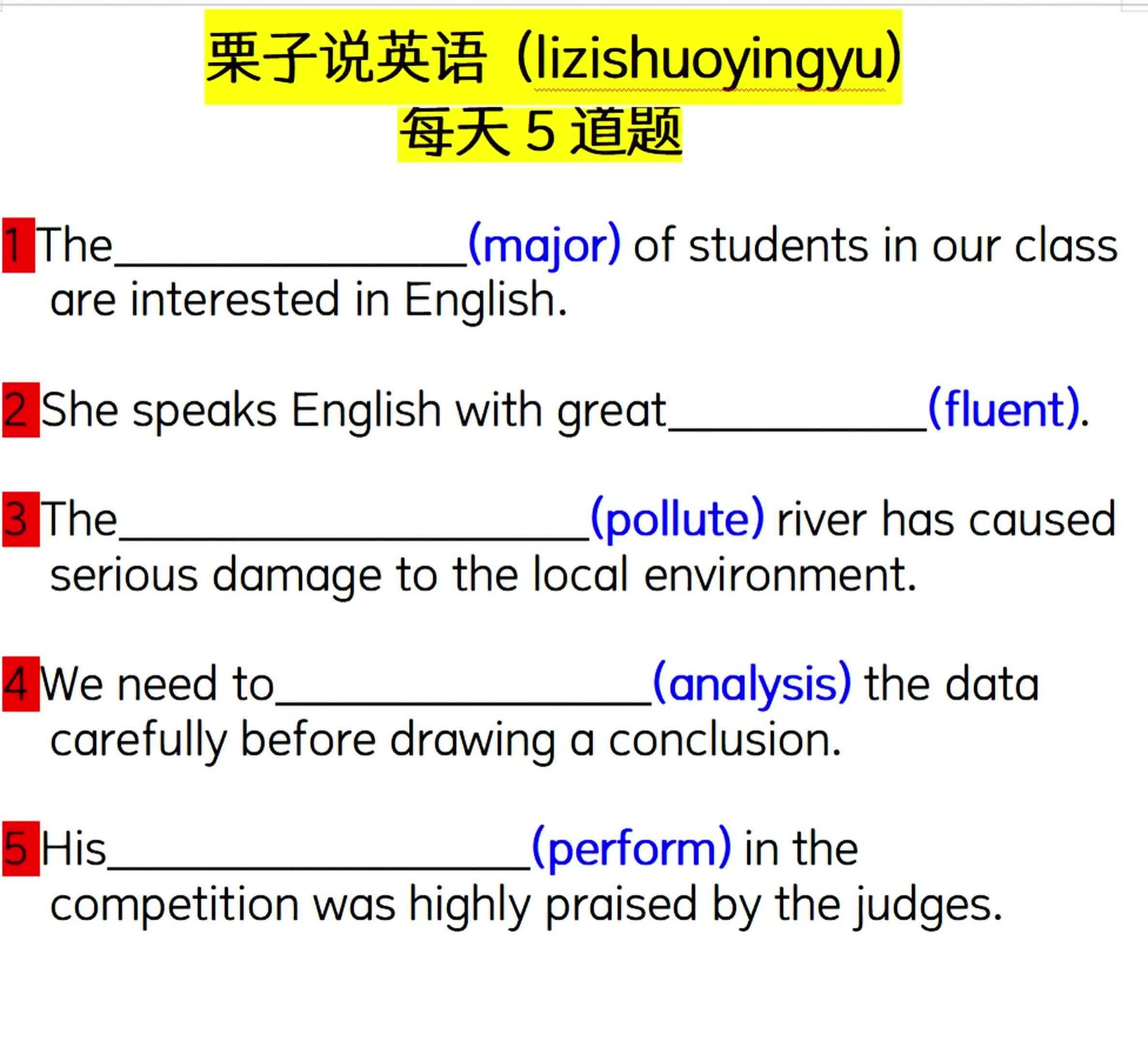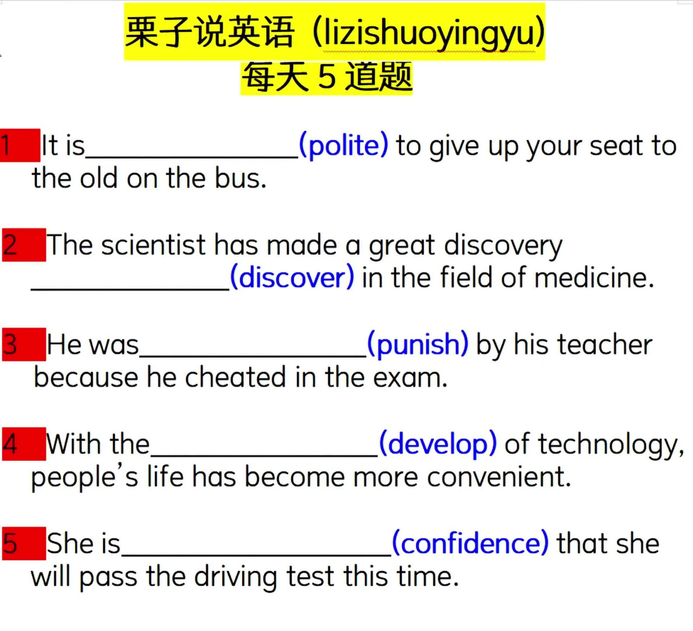 4.2万次播放 | 01:38每天5道题:用所给单词的适当形式填空01011