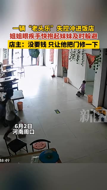 47次播放 | 00:13一辆“老头乐”失控冲进饭店,姐姐眼疾手快,抱起妹妹及时躲避,店主:没要钱 只让他把门修一下。