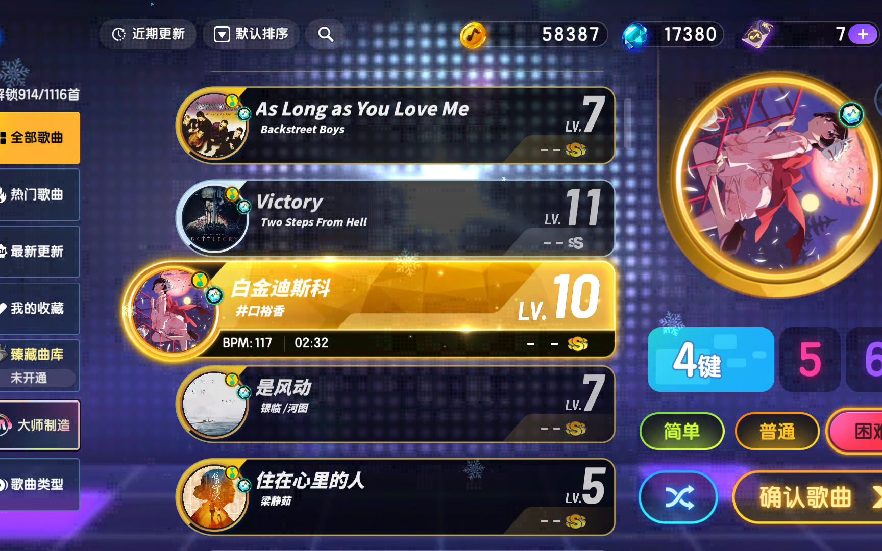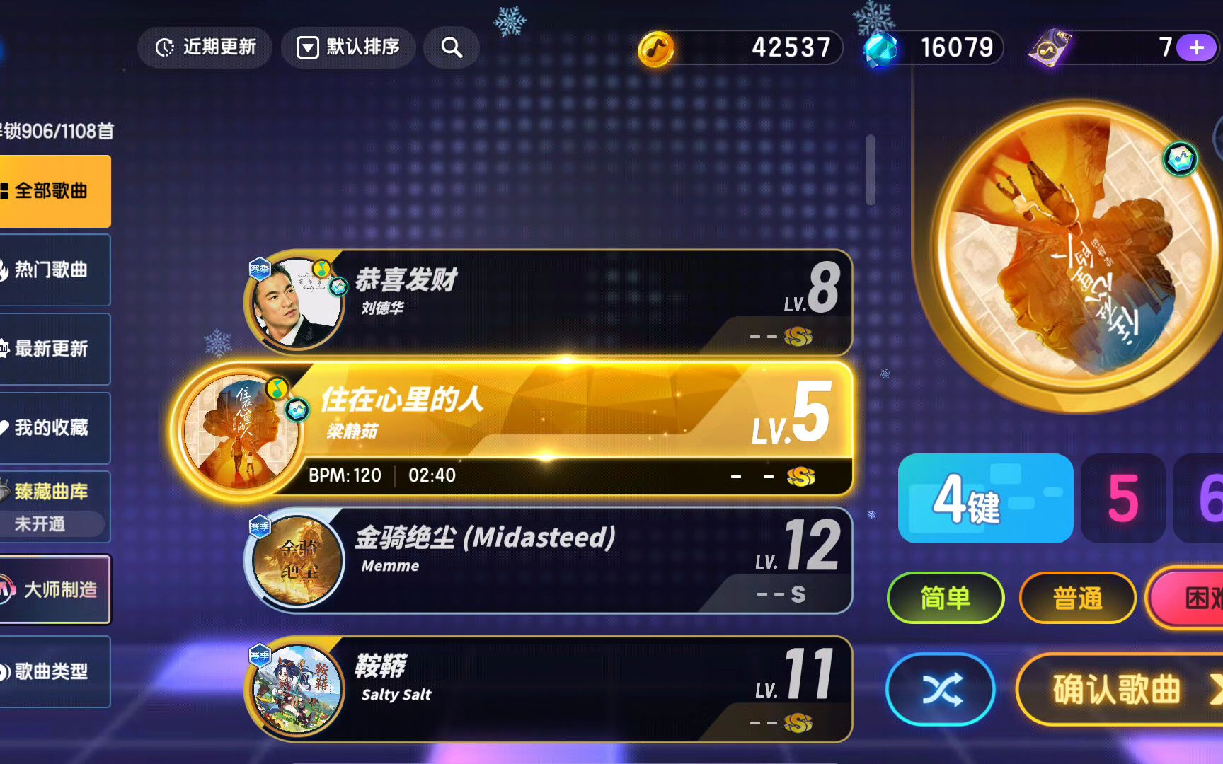 0次播放 | 02:30节奏大师官谱(住在心里的人) 4k HD Lv.5