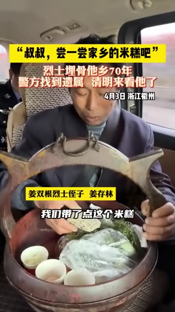 49次播放 | 00:18烈士埋骨他乡70年终于找到家属 “叔叔,尝一尝家乡的米糕吧”。4月3日 浙江衢州。