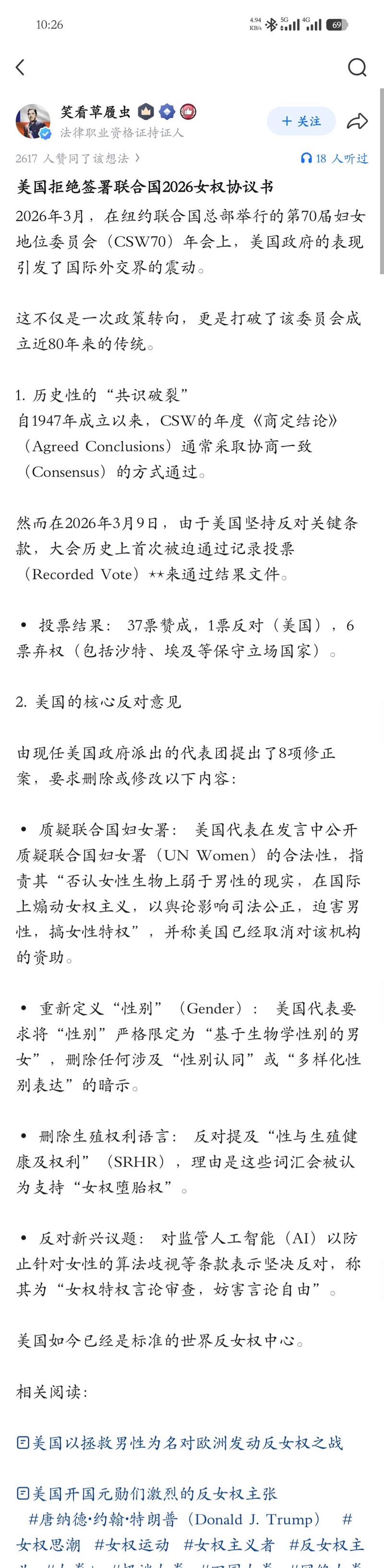美国拒绝签署联合国2026女权协议书