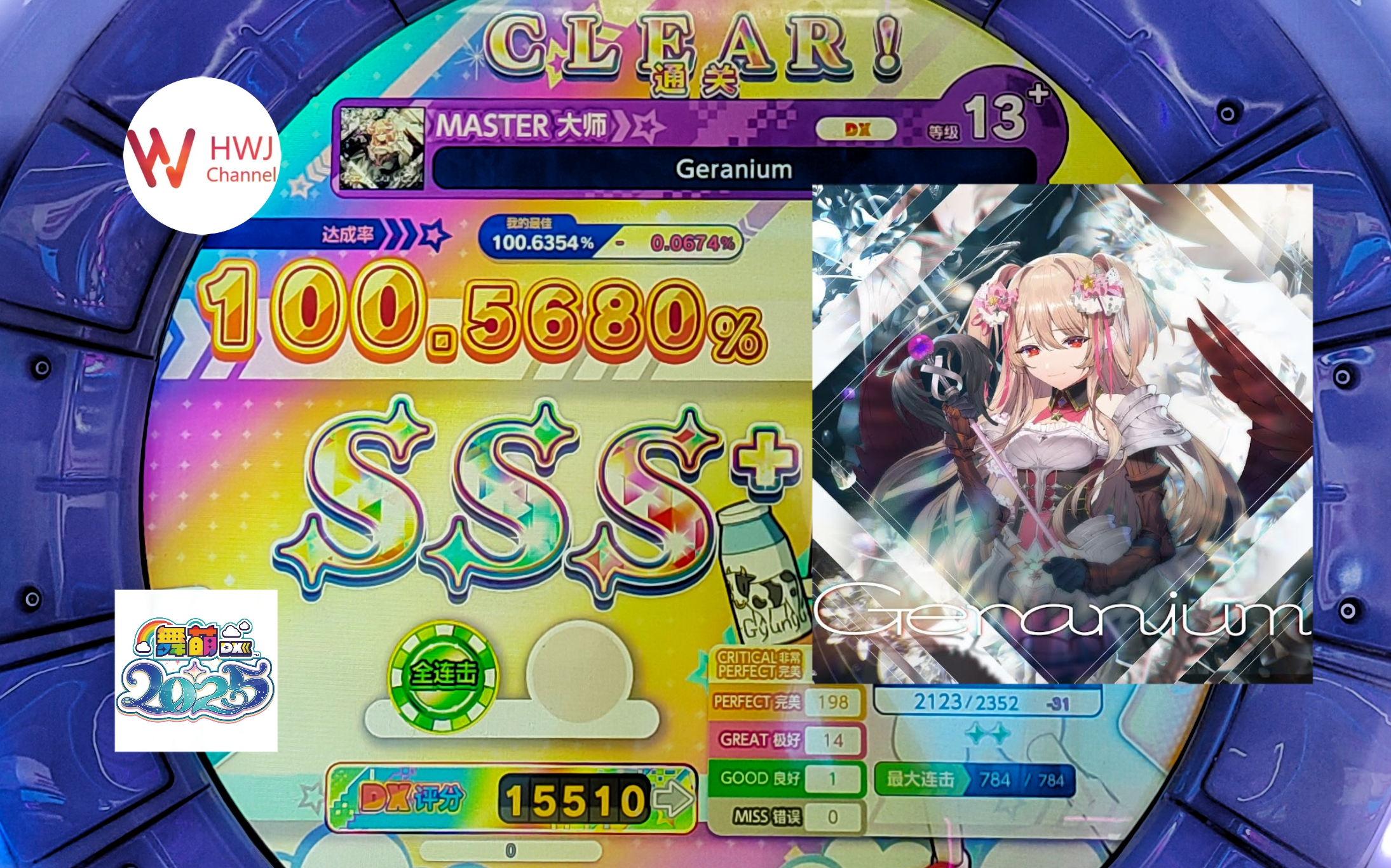 112次播放 | 02:25【舞萌DX自检手元】Geranium [MASTER大师] SSS+ 全连击!
