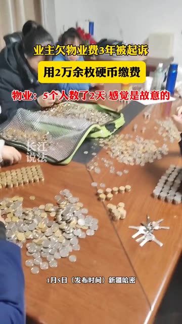 20次播放 | 01:51业主欠物业费3年,被起诉后拎着2万余枚硬币去缴费。物业:总共1万9千多元,还差200多元没交齐...