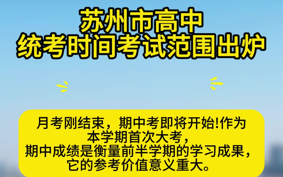 苏州市高中统考时间和考试范围出炉抓紧看