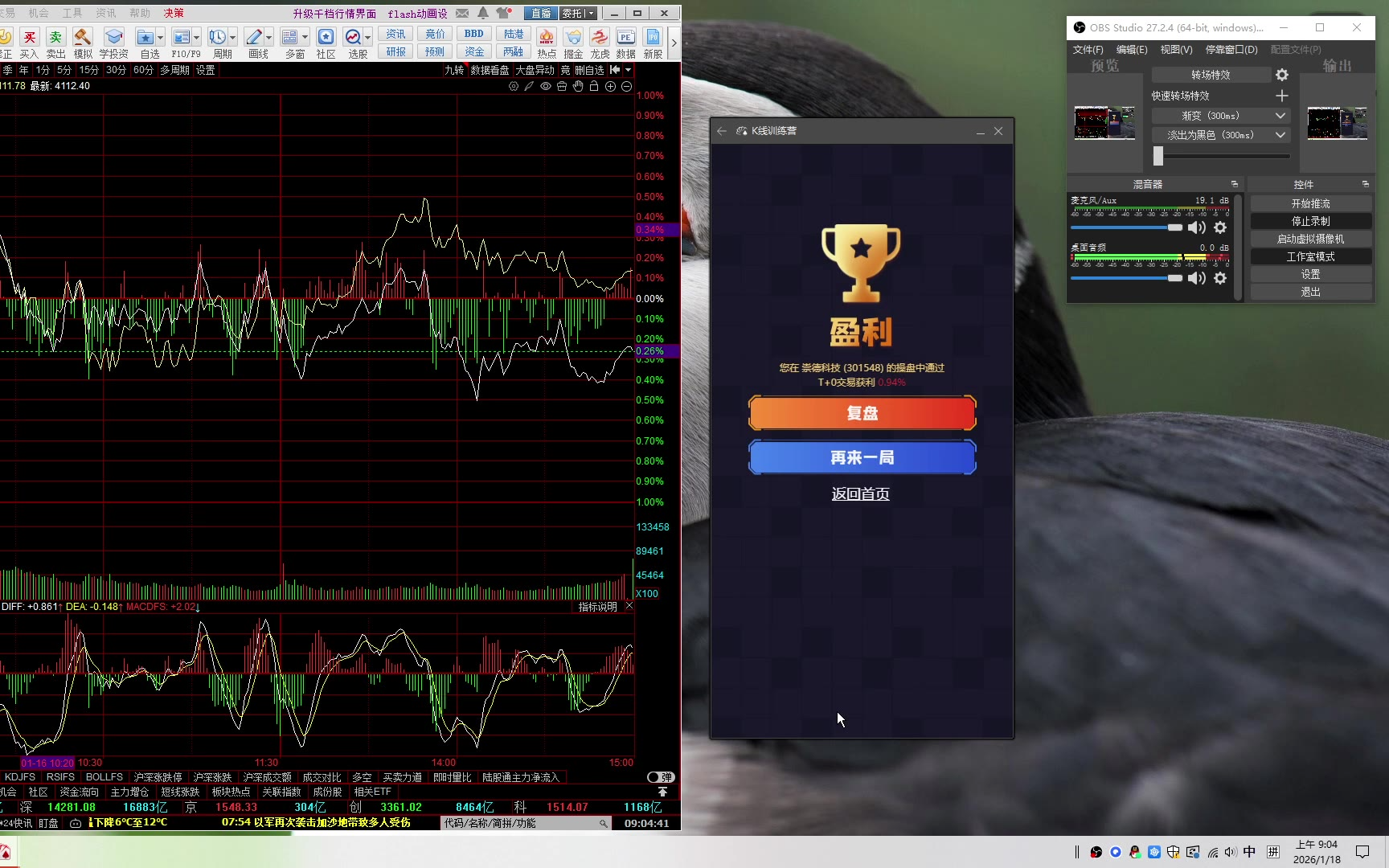 18次播放 | 19:38K线对战VS玩家/260118/同花..