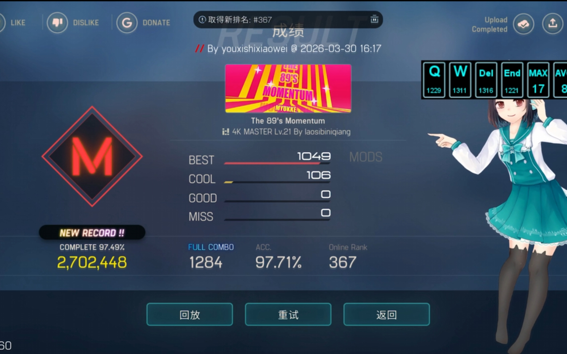 117次播放 | 04:52【Malody V(pc)】补档:MYUKKE.-The 89 s Momentum