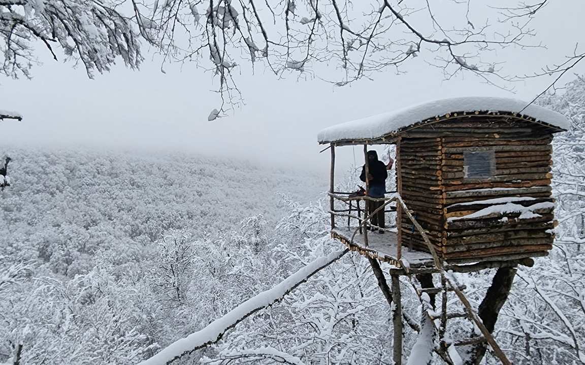 7203次播放 | 16:07国外老哥在野外搭建木屋,中途还遇到了头熊