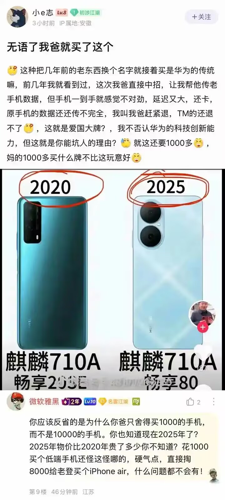 网友控诉千元级华为手机5年没有性能提升延迟又卡顿