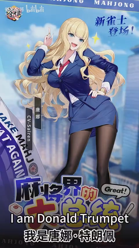 共9张国产麻将游戏《雀姬》推出首位英配雀士:唐娜·特朗佩!“让麻将再次伟大”