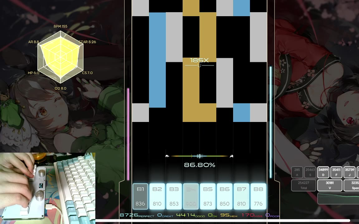 [osu!mania 8k] 大面练习 绝境求生 结尾差点死