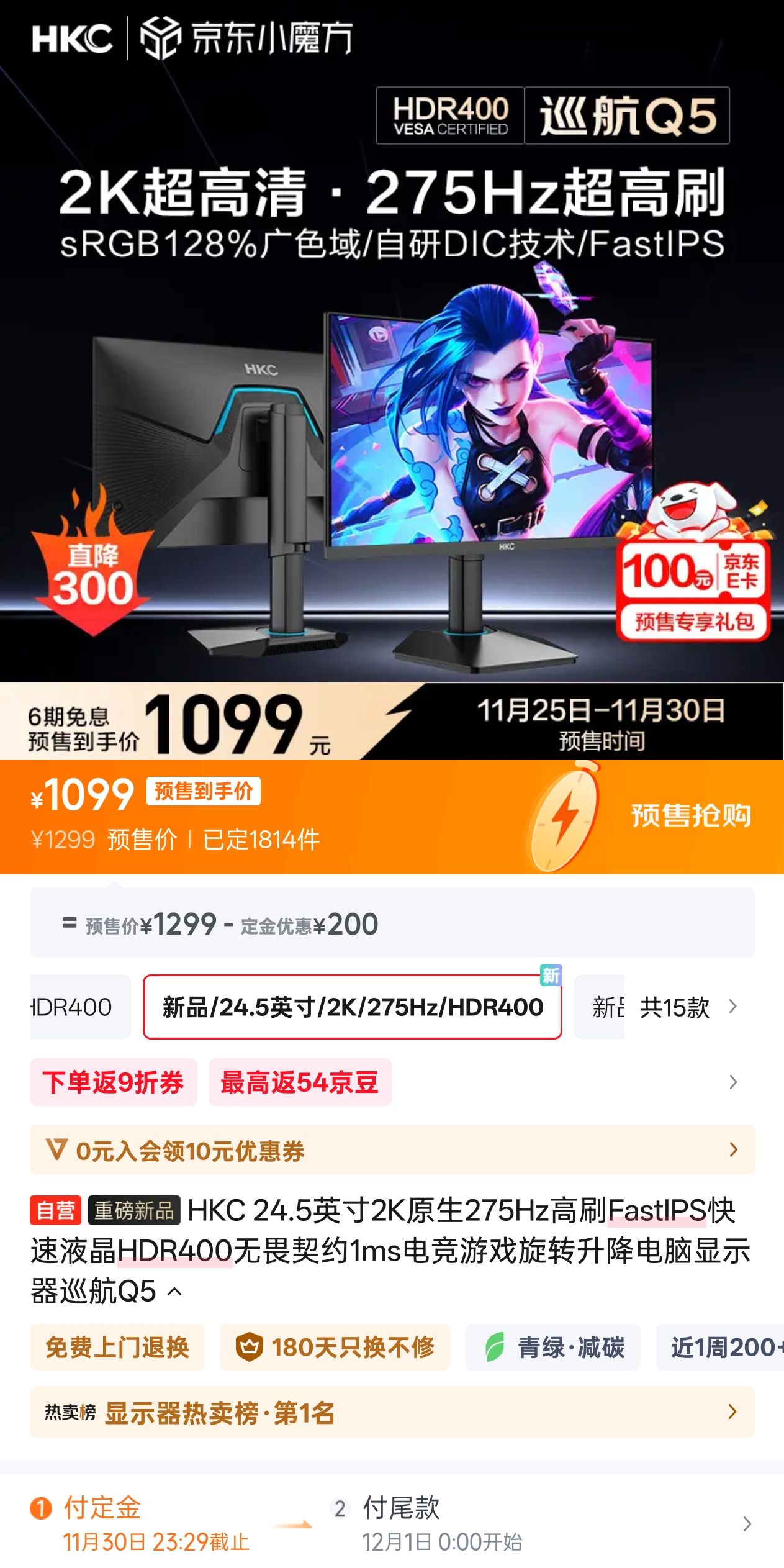 双12临盆,厂商说......“迎面走来的你让我蠢蠢欲动~” 然后转身,埋头上货,而不是向山里走去显示器总计五款:1.HKC 巡航Q5(24.5英寸 Fast IPS)2.HKC 银河V7(27英寸