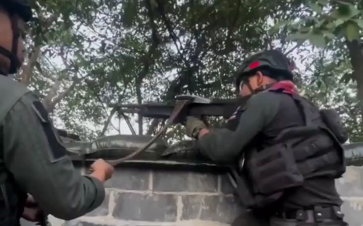 火力全开!泰国皇家警察边境巡逻队,使用M249轻机枪向柬埔寨军方目标开火。