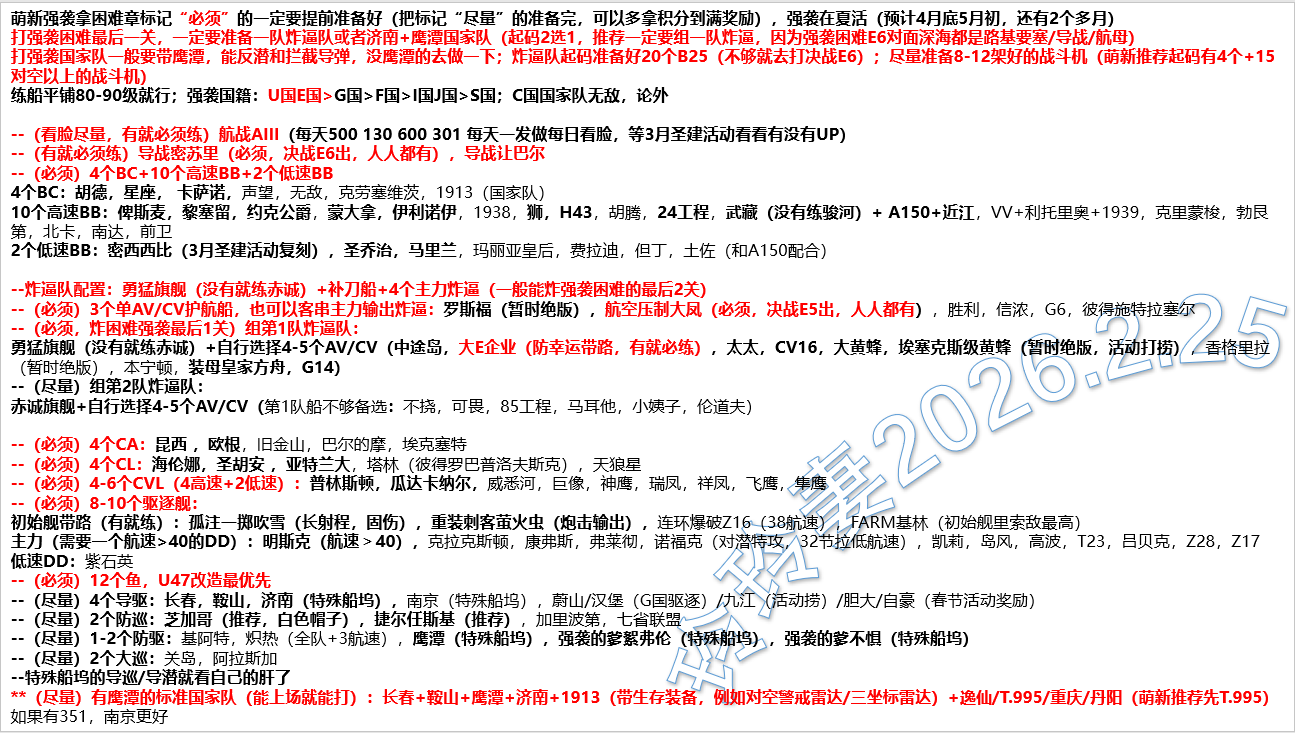 战舰少女R:萌新强袭困难章练船准备工作(2026.2.25更新)