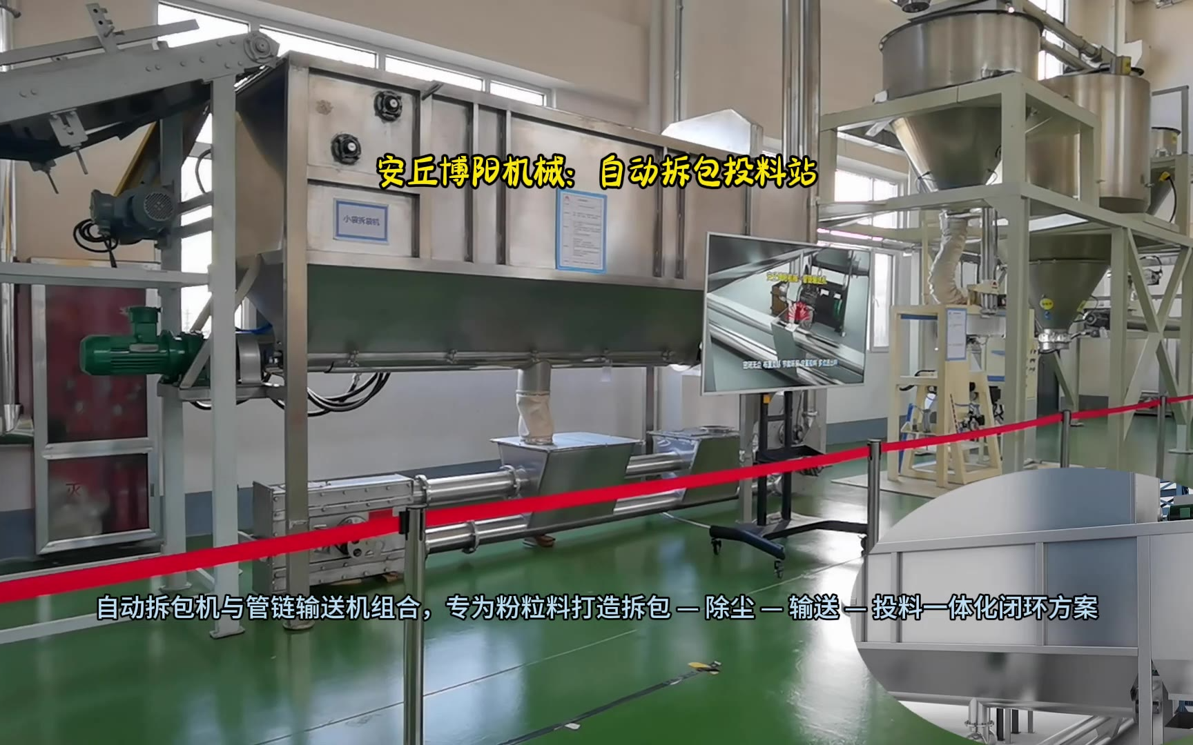 0次播放 | 00:29小苏打粉定量供料用:博阳机械自动拆包机+Z型管链粉体输送机