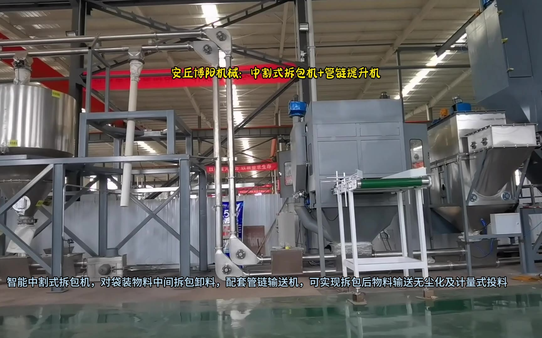 0次播放 | 00:29山东皮带上料自动拆包机 自动拆包投料站现场