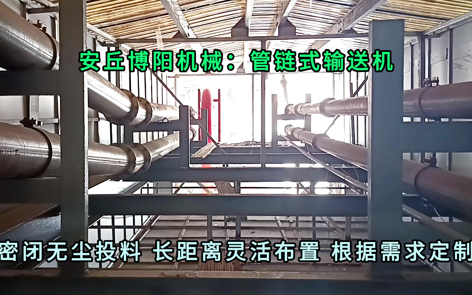 10次播放 | 00:31片碱管链输送机现场展示 管式输送设备灵活布置