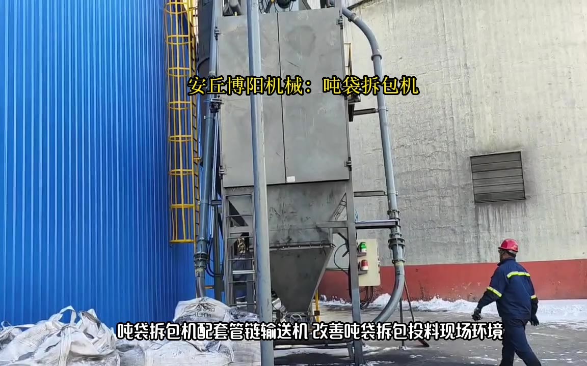 0次播放 | 00:37环保无尘吨包拆包设备 次氯酸钠吨袋破袋机 无尘拆包车间干净如新