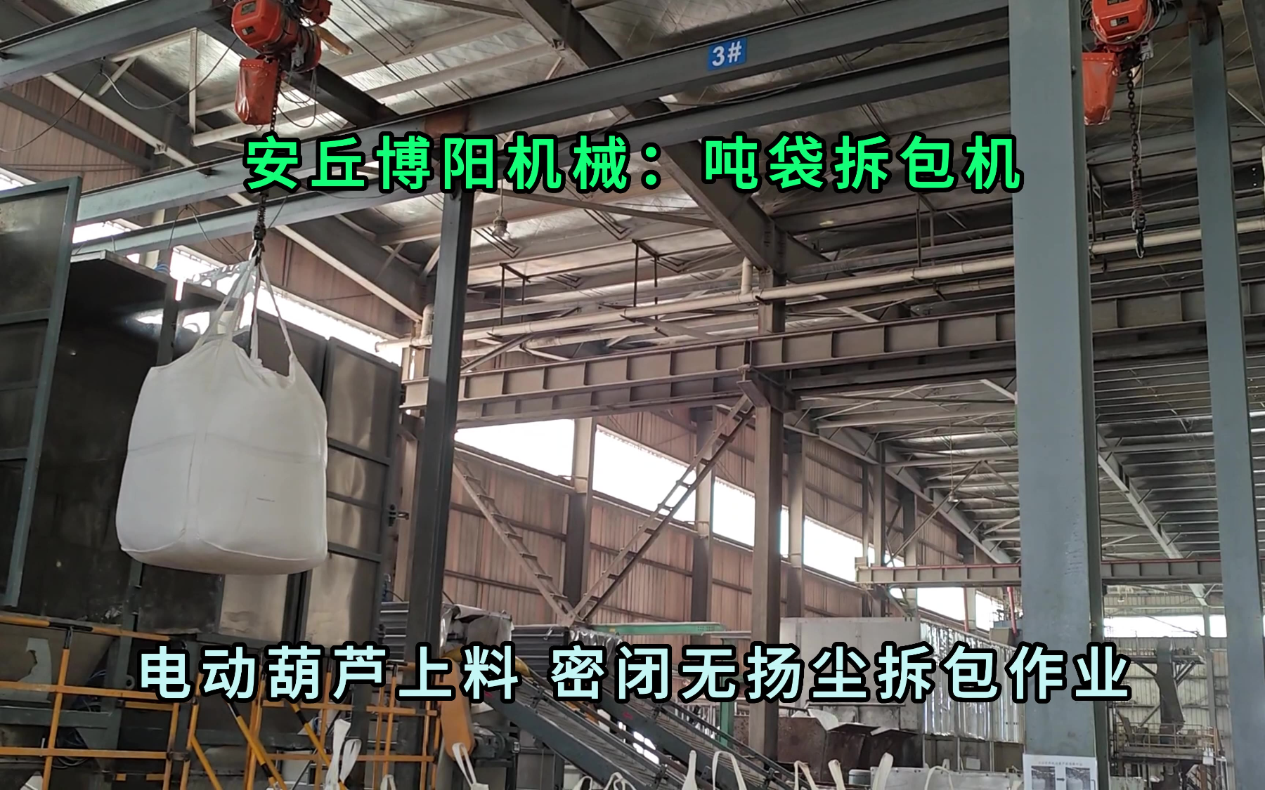 0次播放 | 00:22锂精矿粉不落地吨袋拆包机 批量化吨袋破袋机生产线