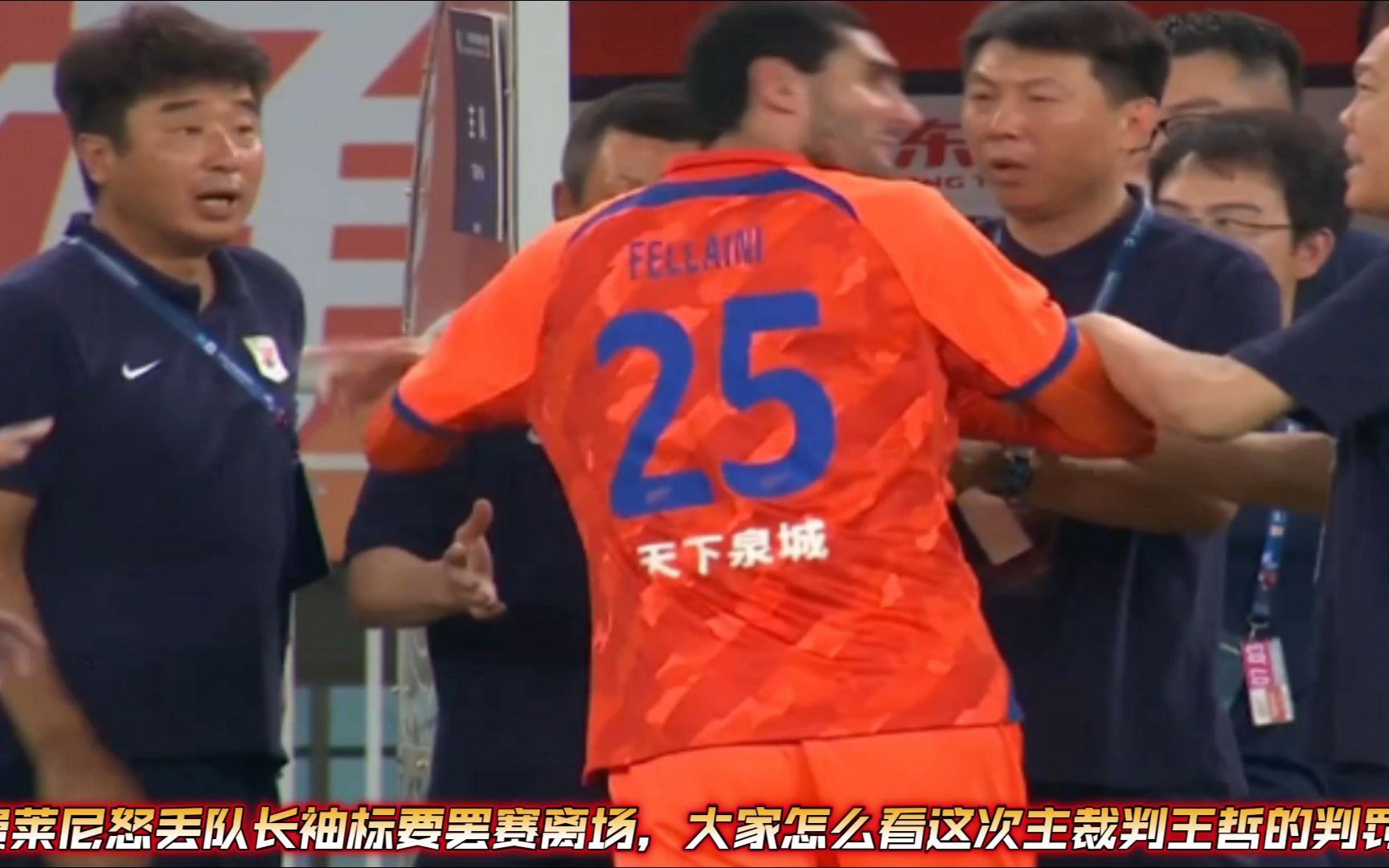 费莱尼怒丢队长袖标要罢赛立场,大家怎么看这次主裁判王哲的判罚?