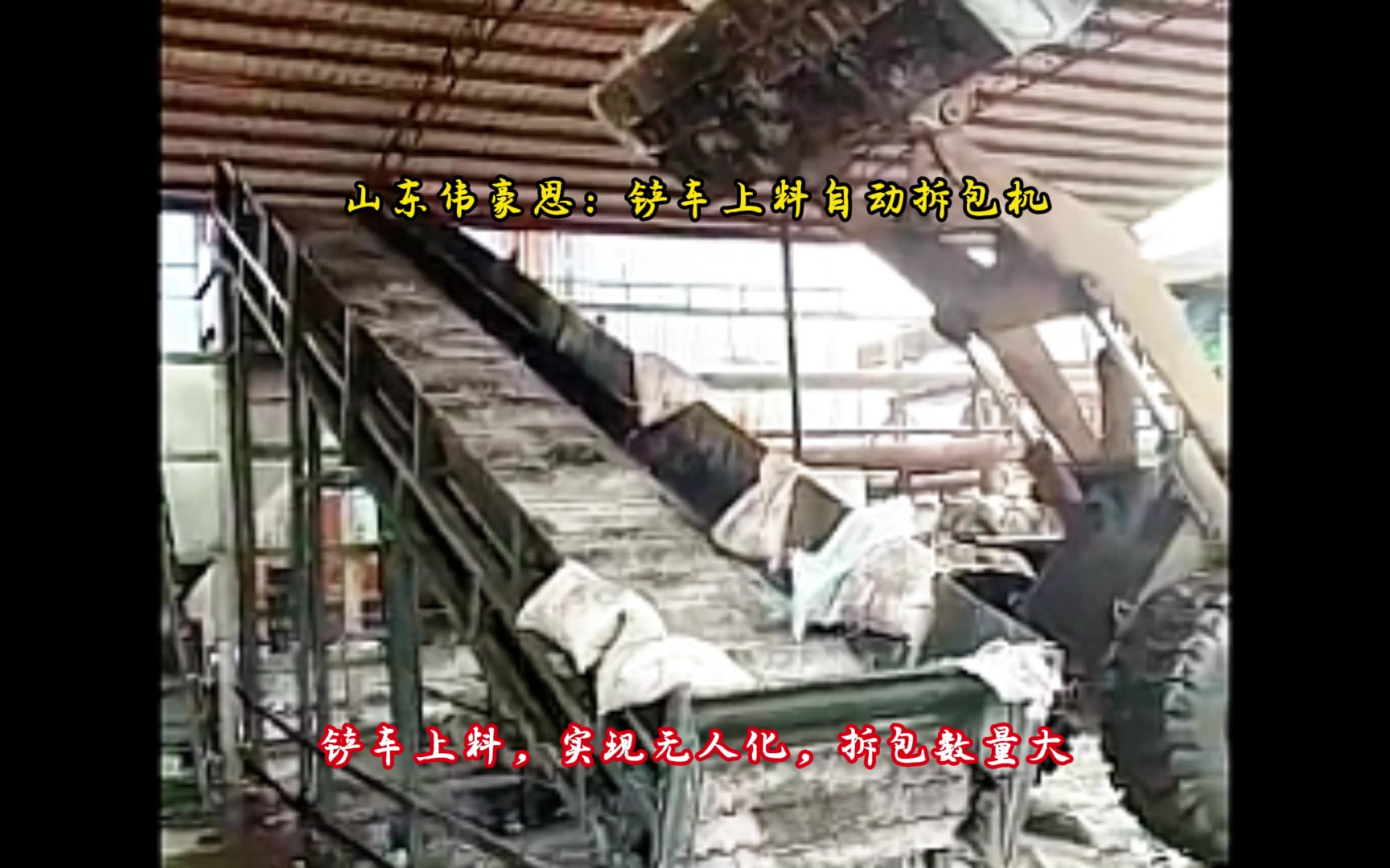 山东伟豪思全自动破包机 石灰粉自动拆垛拆包机 铲车上料工作过程