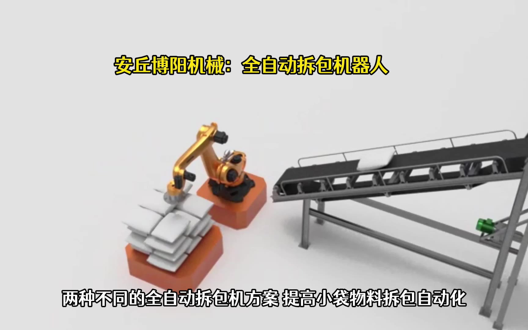 0次播放 | 00:34氯化钙自动破包机器人 机械手全自动拆包系统流程
