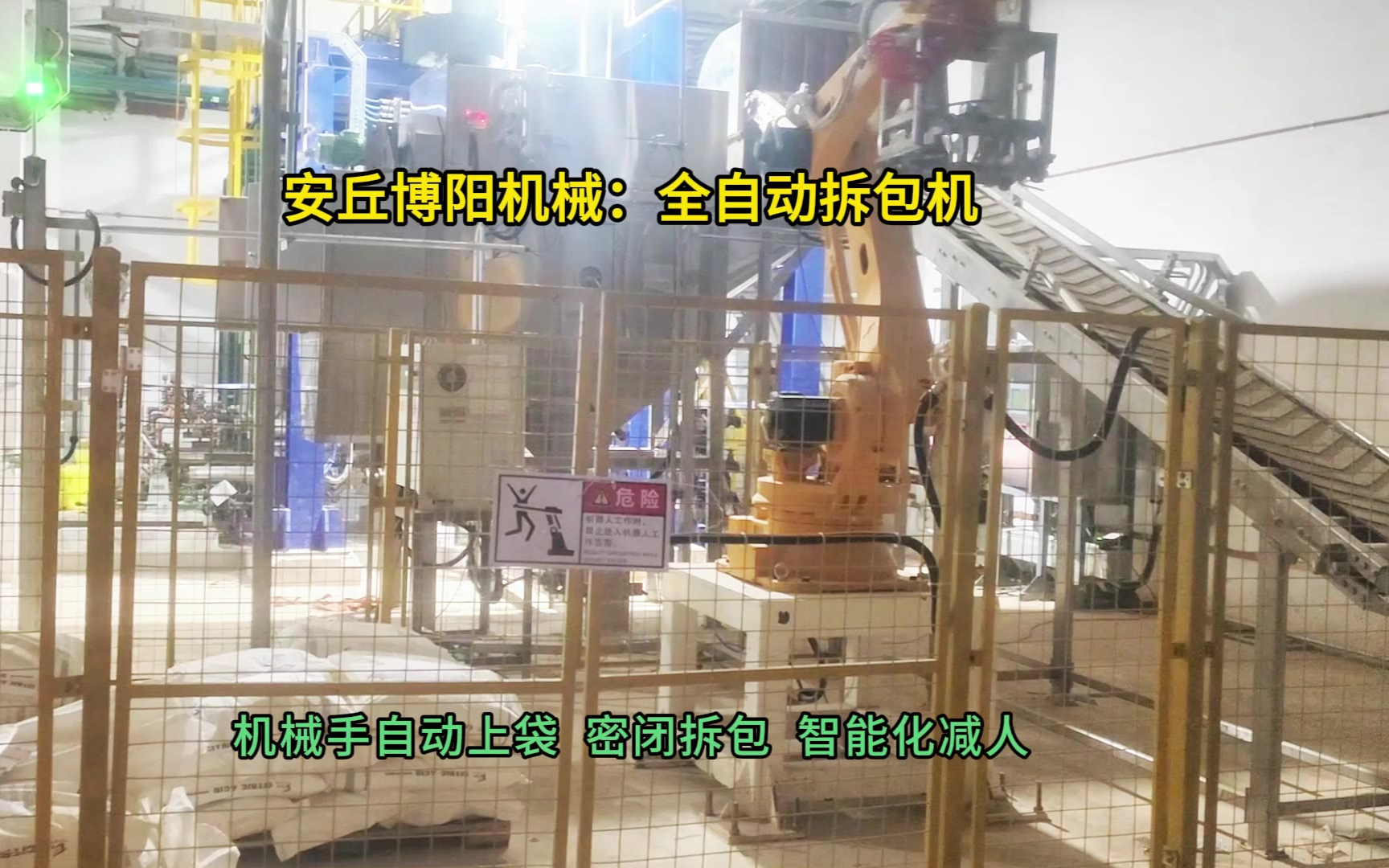 0次播放 | 00:27袋装硫磺机械手拆包机 全自动拆包机系统