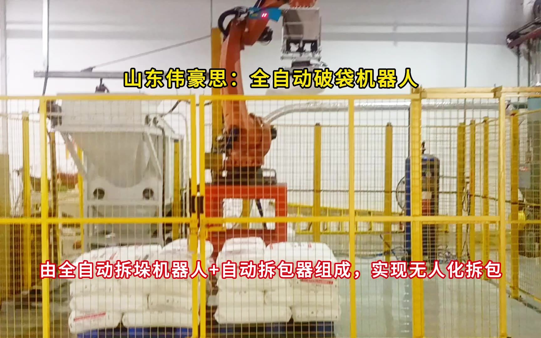 0次播放 | 00:36碱粉全自动拆包机 机械手自动拆包机 实现自动化拆包