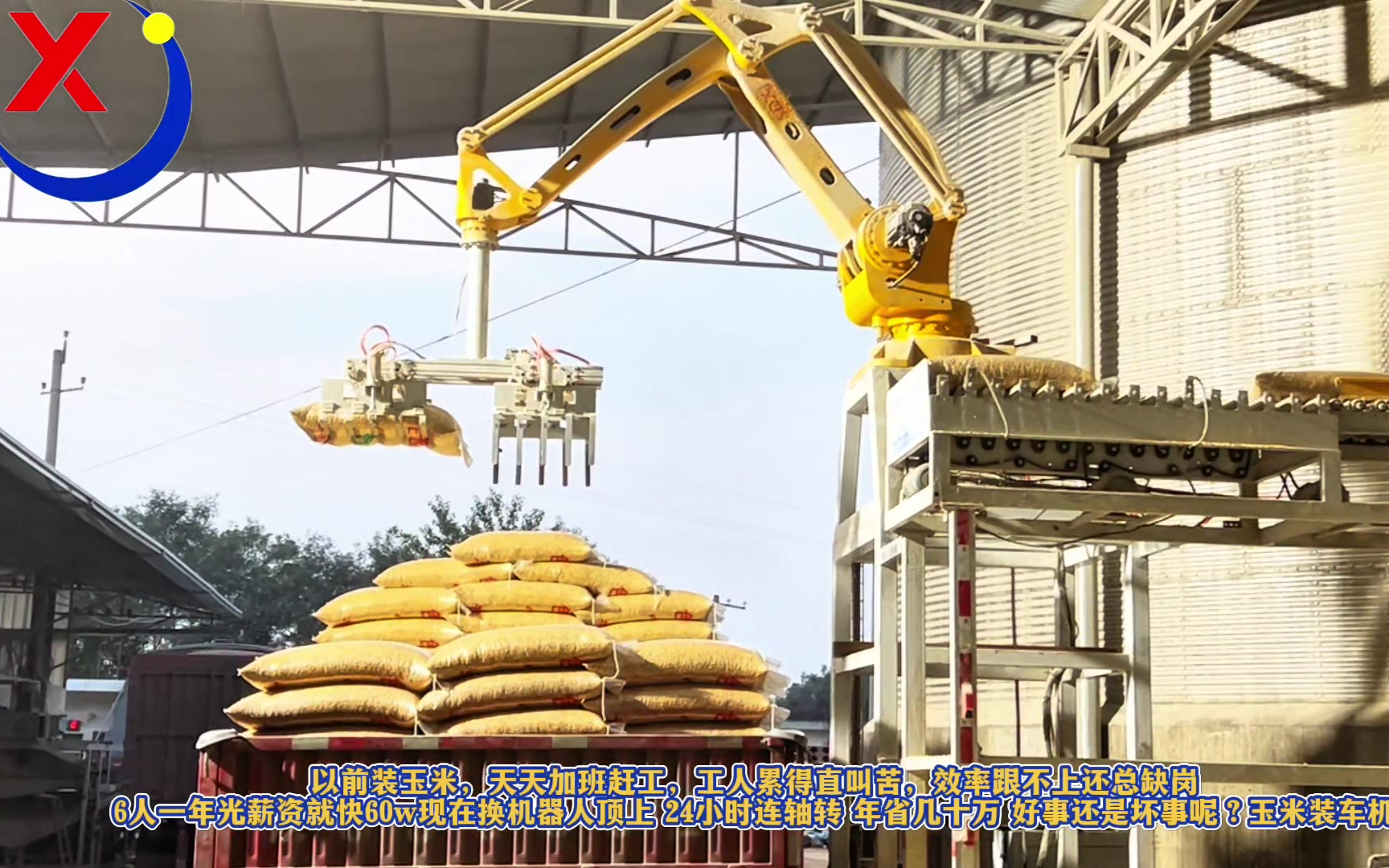 以前装玉米加班赶工工人辛苦效率跟不上还缺岗6人一年光薪资就快60w现在换机器人顶上24小时