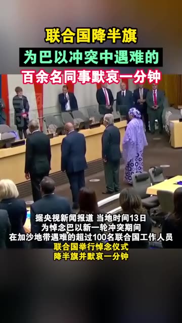 12次播放 | 00:15联合国降半旗,为巴以冲突中遇难的百余名同事默哀一分钟