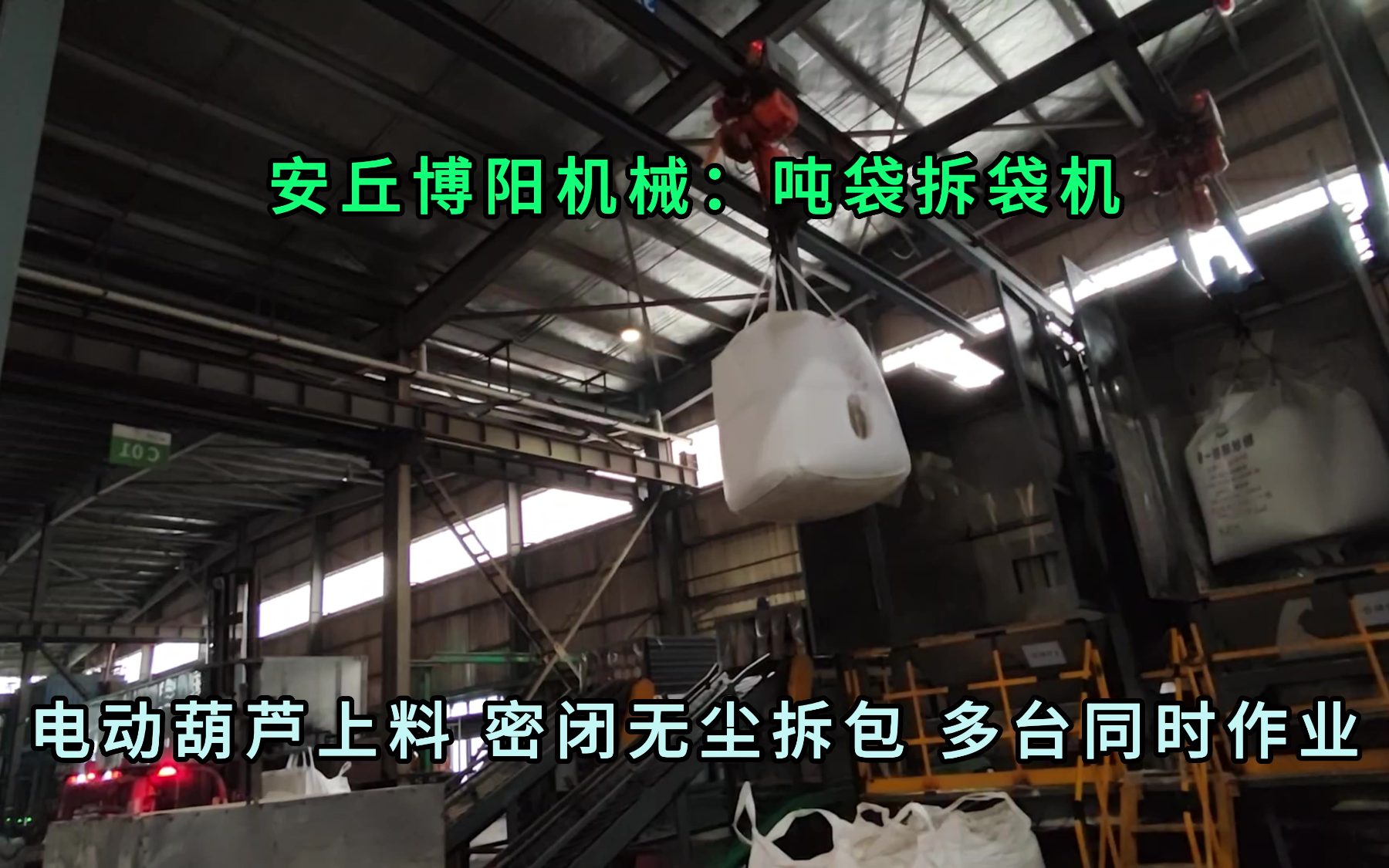 17次播放 | 00:37磷酸一铵吨袋拆包机现场 吨包无尘拆包投料站厂家定制