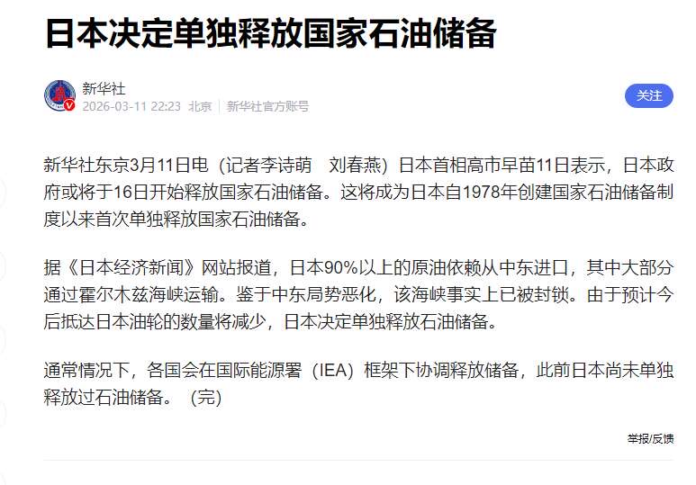 美德日开始释放石油储备