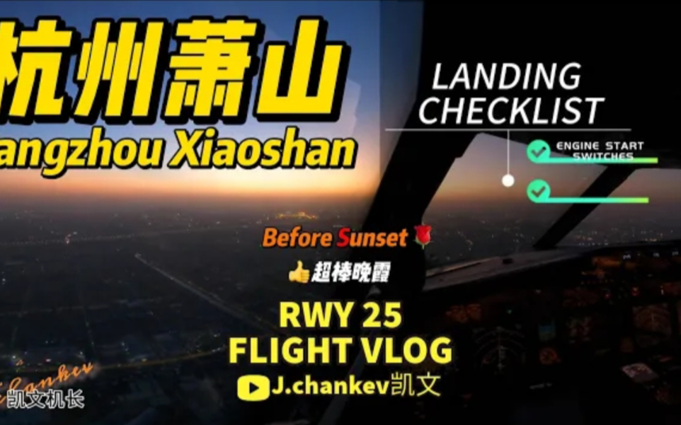 【搬运】波音737-800驾驶舱视角 在超绝晚霞中进近落地杭州萧山国际机场25号跑道