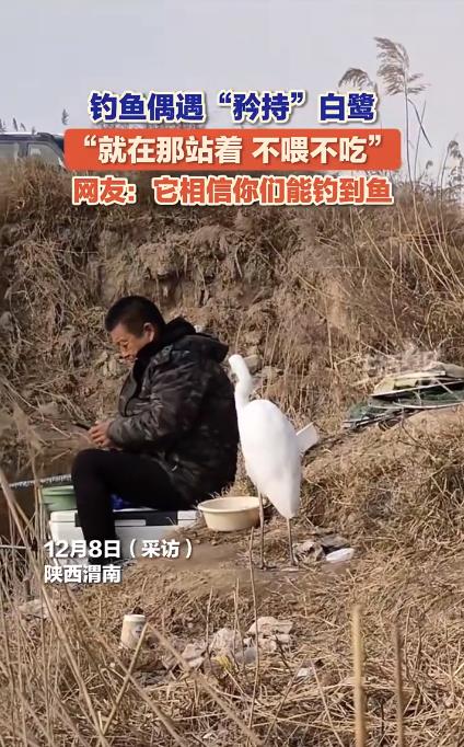 12月8日,陕西渭南一处水域边发生了一幕令人倍感温馨的场景:一名男子在钓鱼时,意外与一只“矜持”的白鹭相遇。与常见水鸟主动靠近人类索食的行为不同,这只白鹭始终安静地站在男子身旁,既不靠近也不索要食物,