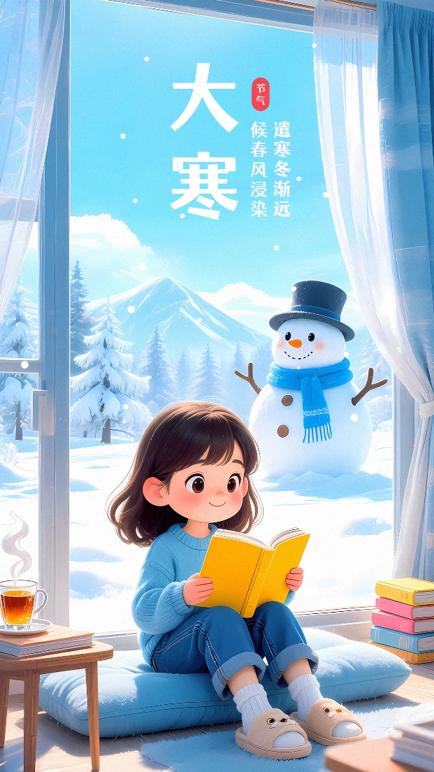 大寒节气锁重阴,败叶飘萧冷巷深。 霜凝古砌痕犹在,雪压孤松色愈沉。 炉烟悄断思前事,烛影微摇怯夜侵。 欲寄幽怀向何处?寒鸦数点没遥岑。