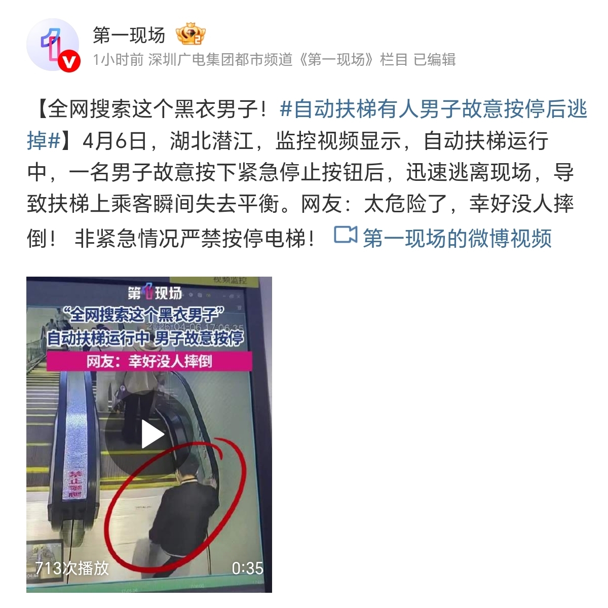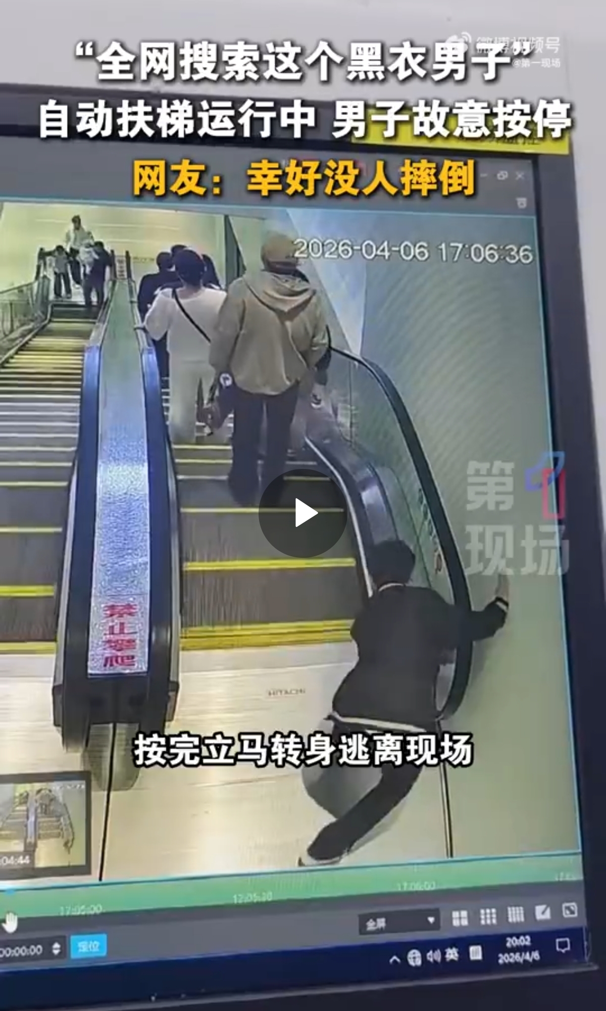 自动扶梯有人男子故意按停后逃掉